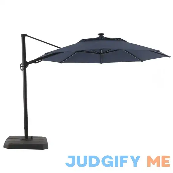 Customers love the allen + roth 11-ft Blue Solar Powered Crank Patio Umbrella with Base URM819003J-3