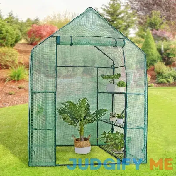 BBBuy Outdoor Portable Walk-in Greenhouse 3 Tiers 6 Shelves w/ Durable PE Cover Roll Up Zipper Door Steel Frame Screen Windows Garden Greenhouse