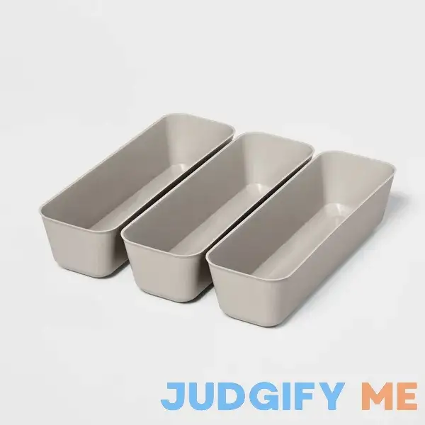 Customers find the Brightroom 3pk Long Storage Trays to be a great solution for keeping their space tidy and organized. With three trays included in the pack, they have plenty of room to store various items such as stationery, cosmetics, and small accessories. The long design of the trays makes them versatile and perfect for fitting in drawers or on shelves.