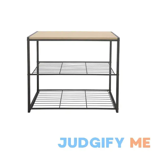 Brightroom 4 Tier Shoe Rack Black Metal with Natural Wood