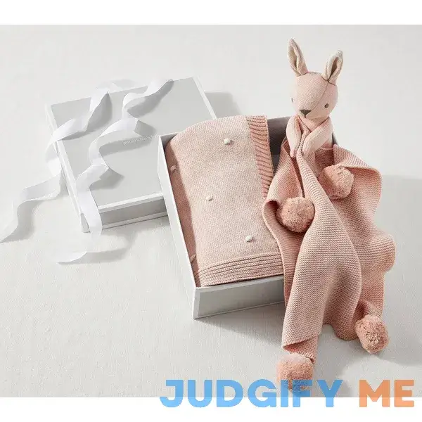 Cotton Sweater Knit Baby Blanket And Thumbie Set