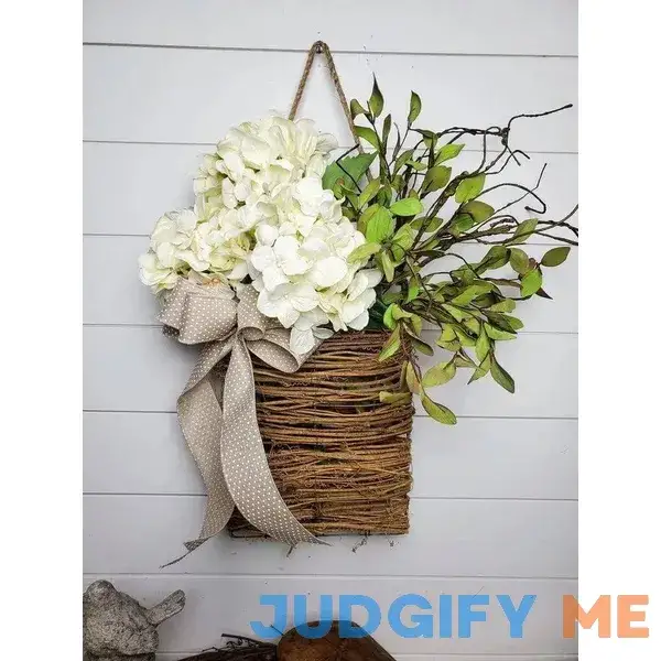 Cream Hydrangea Door Hanger Basket Wreath