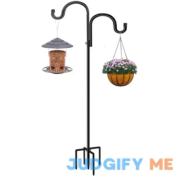 Customers love the Double Shepherds Hook for Outdoor for its sturdy design and adjustable height feature. They find it easy to set up and appreciate the 78-inch height that allows them to hang bird feeders and plants at the perfect level. The 5-prong base provides extra stability, ensuring that their outdoor decor stays securely in place.