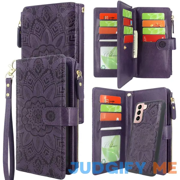 Harryshell Detachable Magnetic Zipper Wallet Leather Case Cash Pocket with 12 Card Slots Holder Wrist Strap for Samsung Galaxy S21 5G 6.2 Inch (2021
