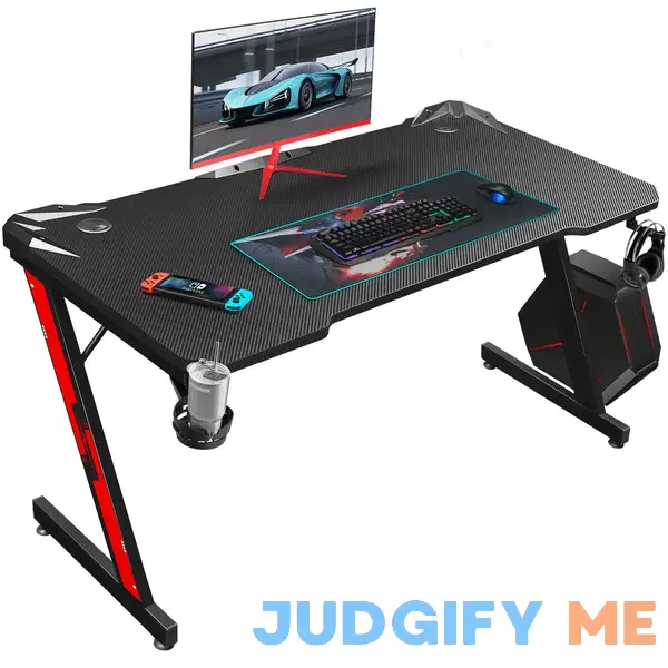 The Homall Gaming Desk has received a plethora of reviews that highlight its appeal for dedicated gamers and home office users alike. Many customers rave about the sleek design and the sturdy Z-shaped frame, which not only looks modern but also provides exceptional stability during intense gaming sessions. Users appreciate the spacious surface that allows for multiple monitors and gaming accessories, making it an ideal workstation for both gaming and productivity. The carbon fiber surface is noted for its stylish appearance, enhancing the overall aesthetic of any room.