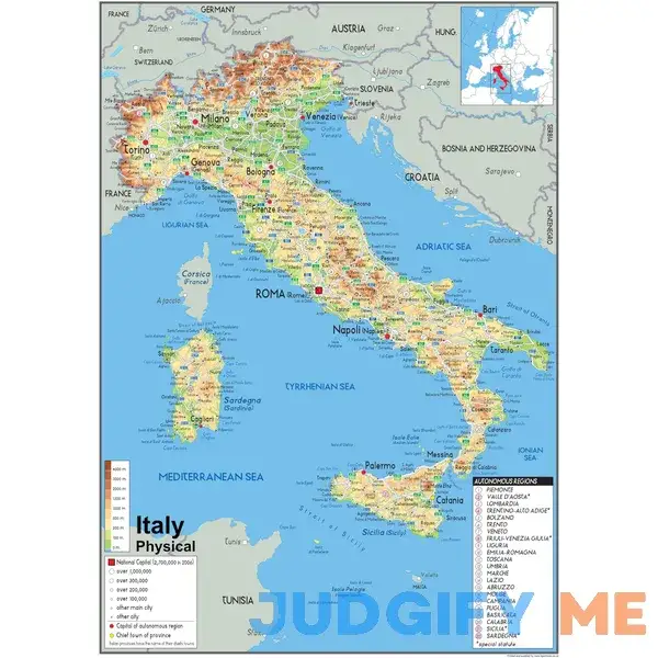 Italy Physical Poster Map