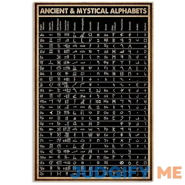 JIUFOTK Ancient & Mystical Alphabets Metal Poster Wall Decoration Chart Knowledge Metal Sign Bedroom Decor Retro Plaque Bathroom Decor Birthday Gift
