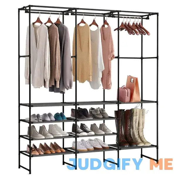 Many users appreciate the space-saving design of this clothing rack. With four tiers of shelving, there is plenty of room to store not only clothes but also shoes, bags, and accessories. Its versatility allows for use in various settings, from a portable closet to a coat hanging rack.