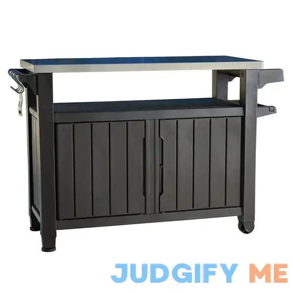 Users also appreciate the durability of the Keter Unity XL Outdoor Kitchen Bar Rolling Cart with Storage Cabinet. They mention that it withstands outdoor elements well and remains in good condition even after prolonged use. The sturdy construction and quality materials used in the cart contribute to its longevity, making it a reliable choice for outdoor gatherings.