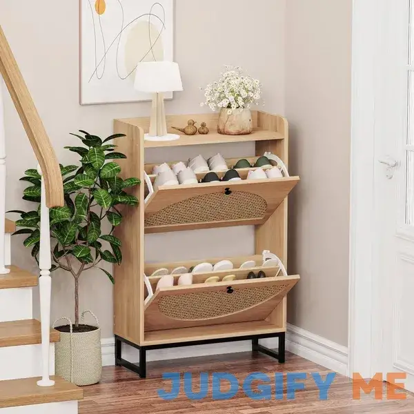 Kfo Shoe Cabinet with 2 Handmade Natural Rattan Flip Drawers