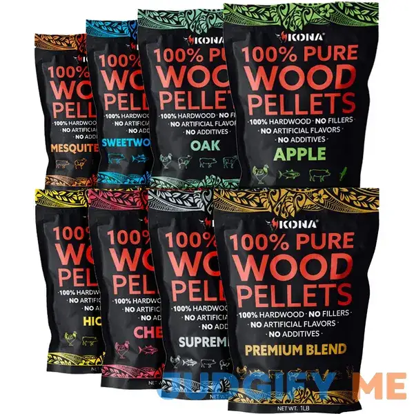 Kona Wood Pellets All Variety Pack, Intended for Ninja Woodfire Outdoor Grill, Wood Fire Oven & Smoker, 8, 1lb Resealable Bags