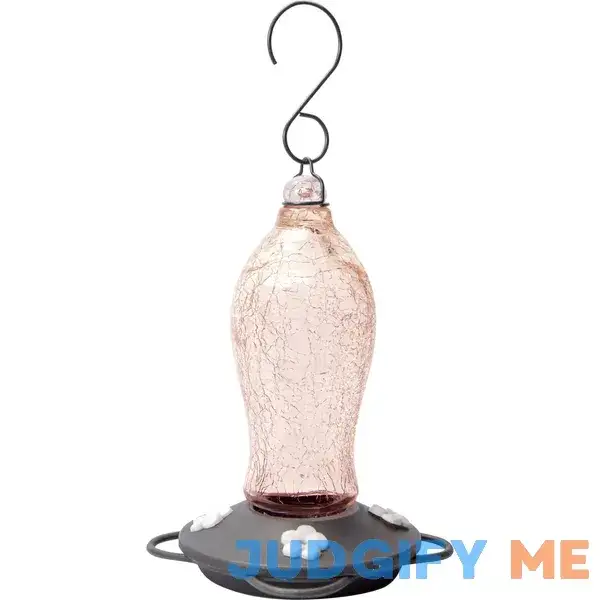 Nature’s Way Blush Crackle Glass Artisan Gravity Hummingbird Feeder