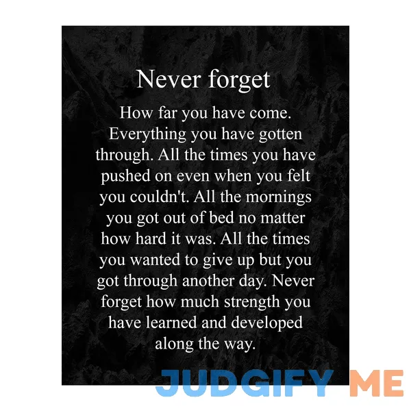 While many customers praise the emotional impact and aesthetic appeal of the “Never Forget How Far You Have Come” print, some offer contrasting views. A few individuals find the design too simplistic or the colors not to their liking. However, the majority appreciate the timeless message and the sense of empowerment it brings to their space. Overall, this artwork continues to resonate with individuals on their personal growth paths.
