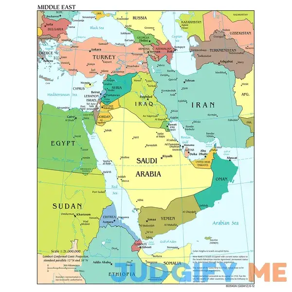 Palmetto Posters 24×31 Laminated Poster: Large scale detailed political map of the middle east with major cities and capitals