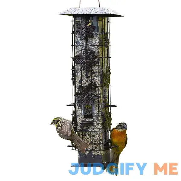 Many customers appreciate the sturdy construction of the Squirrel Be Gone Wild Bird Feeder, noting that it withstands all types of weather conditions without rusting or fading. They also mention that the feeder is easy to fill and clean, making maintenance a breeze. Some customers have even commented on the attractive design, saying that it adds a touch of elegance to their outdoor space. Overall, the Squirrel Be Gone Wild Bird Feeder has become a favorite among bird lovers who value both functionality and aesthetics.