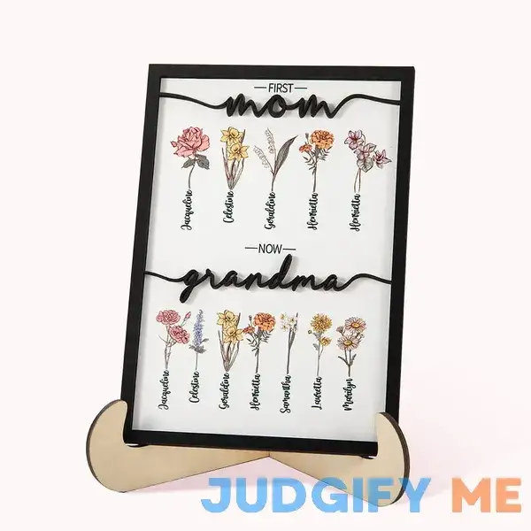 Personalized First Mom Now Grandma Birth Flower Garden Wooden Plaque Frame Sign with Kid’s Name Mother’s Day Christmas Home Decor Gift for Grandma Mom