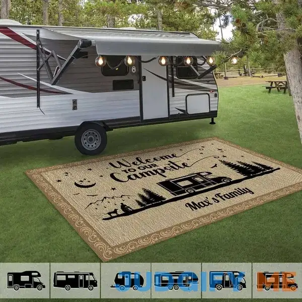 Personalized Mother’s Day Gifts 2024, Happy Campers Camping Patio Mat Personalized Gift TA29 888480, 4.6’x8 (55×96 inch) (Favorite)