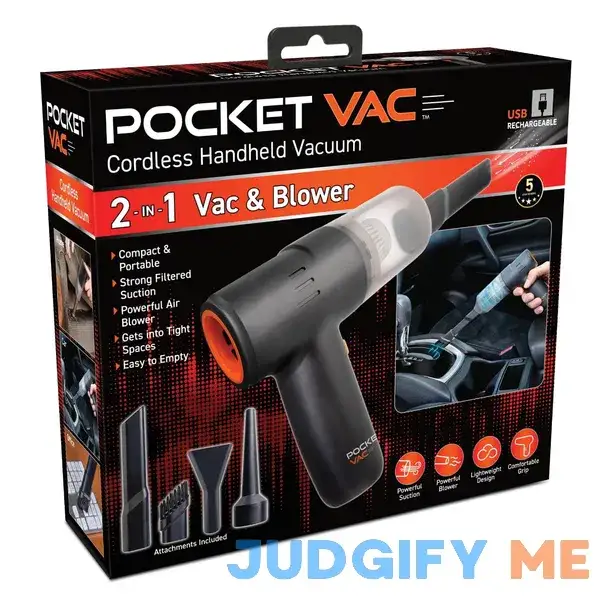 Customers are raving about the convenience of the Pocket Vac Handheld Vacuum. They love how lightweight and easy it is to use, making cleaning a breeze. Many customers mention that they use it for quick clean-ups around the house and in their car, and appreciate its compact size that makes it easy to store. The Pocket Vac Handheld Vacuum is also praised for its powerful suction that easily picks up dirt and debris.