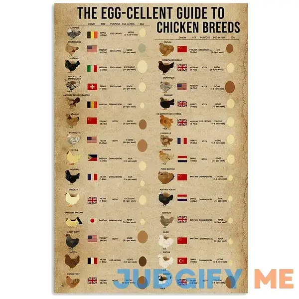 Retro Tin Sign Art Poster The Egg-Cellent ?Guide to Chicken Breed Kitchen Home Decoration Restaurant Farm Metal Sign 12×16 Inches