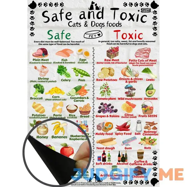 Safe and Toxic Foods for Dogs and Cats Essential Pet Health Guide fridge MAGNET – Size A4 (8.3 x 11.7 inch)