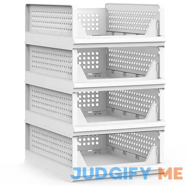 UAK 4 Pack Stackable Plastic Storage Basket for Closet Wardrobe Organizer and Storage Bin Sweater Drawer Shelf Storage Container for Cupboard