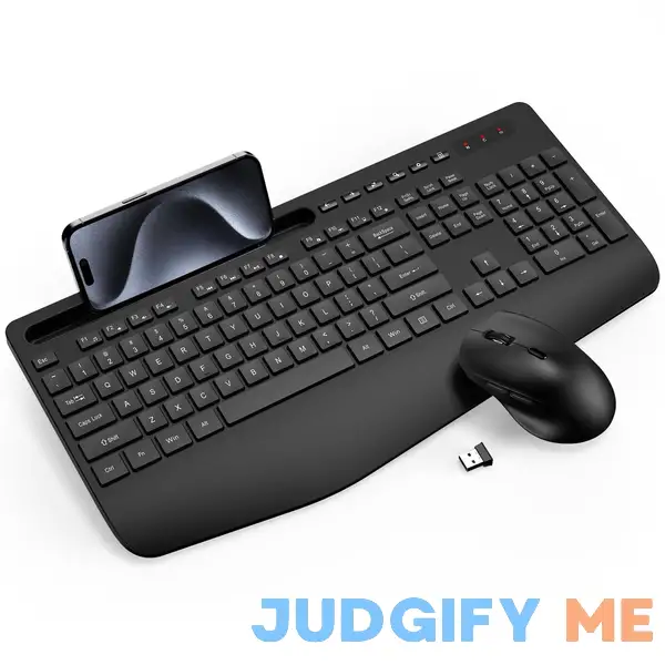 Wireless Keyboard and Mouse Combo – Full-Sized Ergonomic Keyboard with Wrist Rest, Phone Holder, Sleep Mode, Silent 2.4GHz Cordless Keyboard Mouse